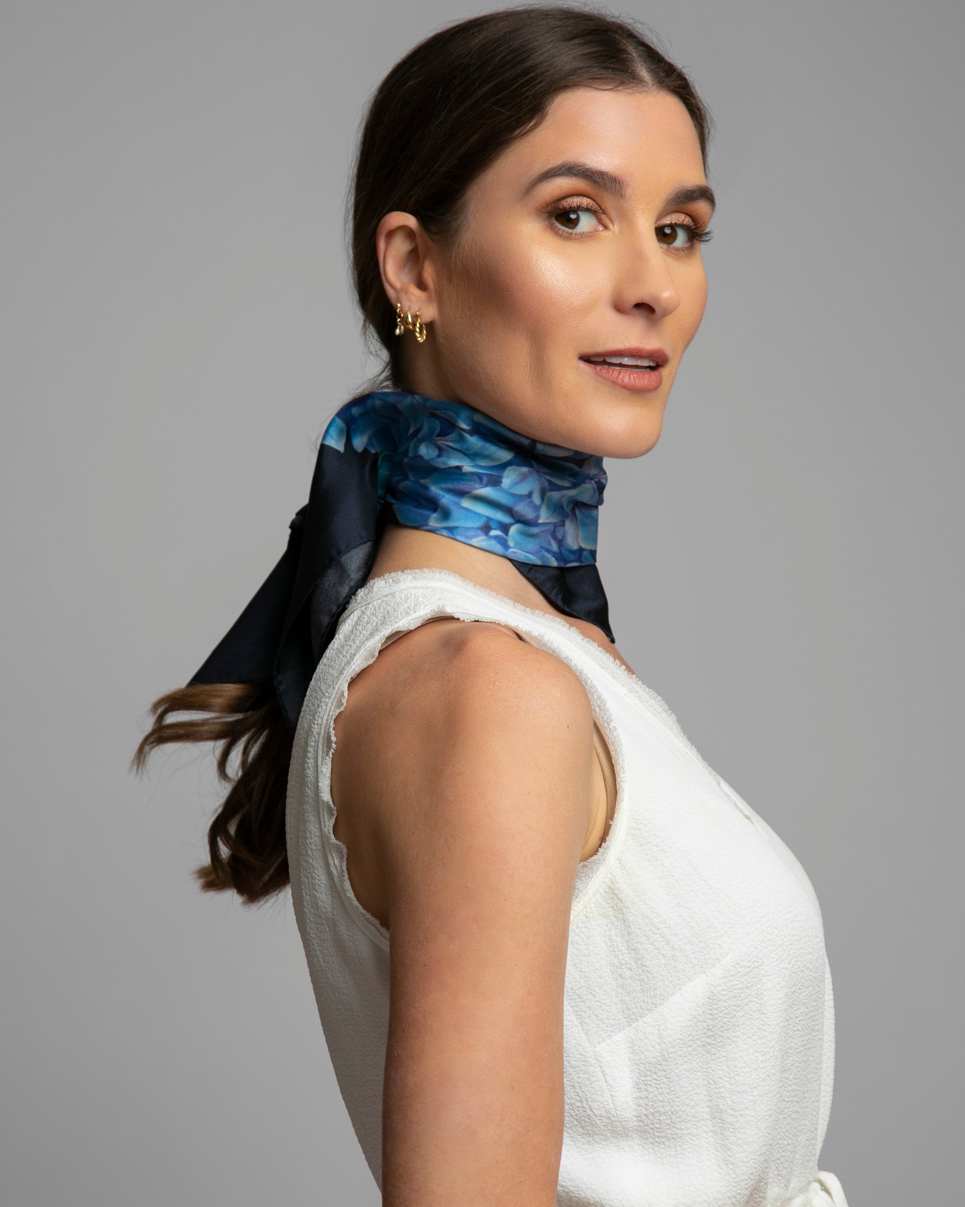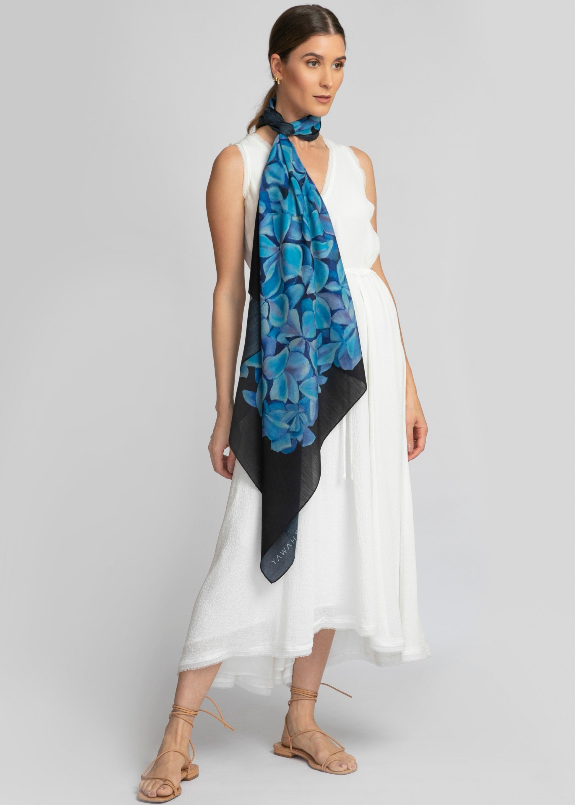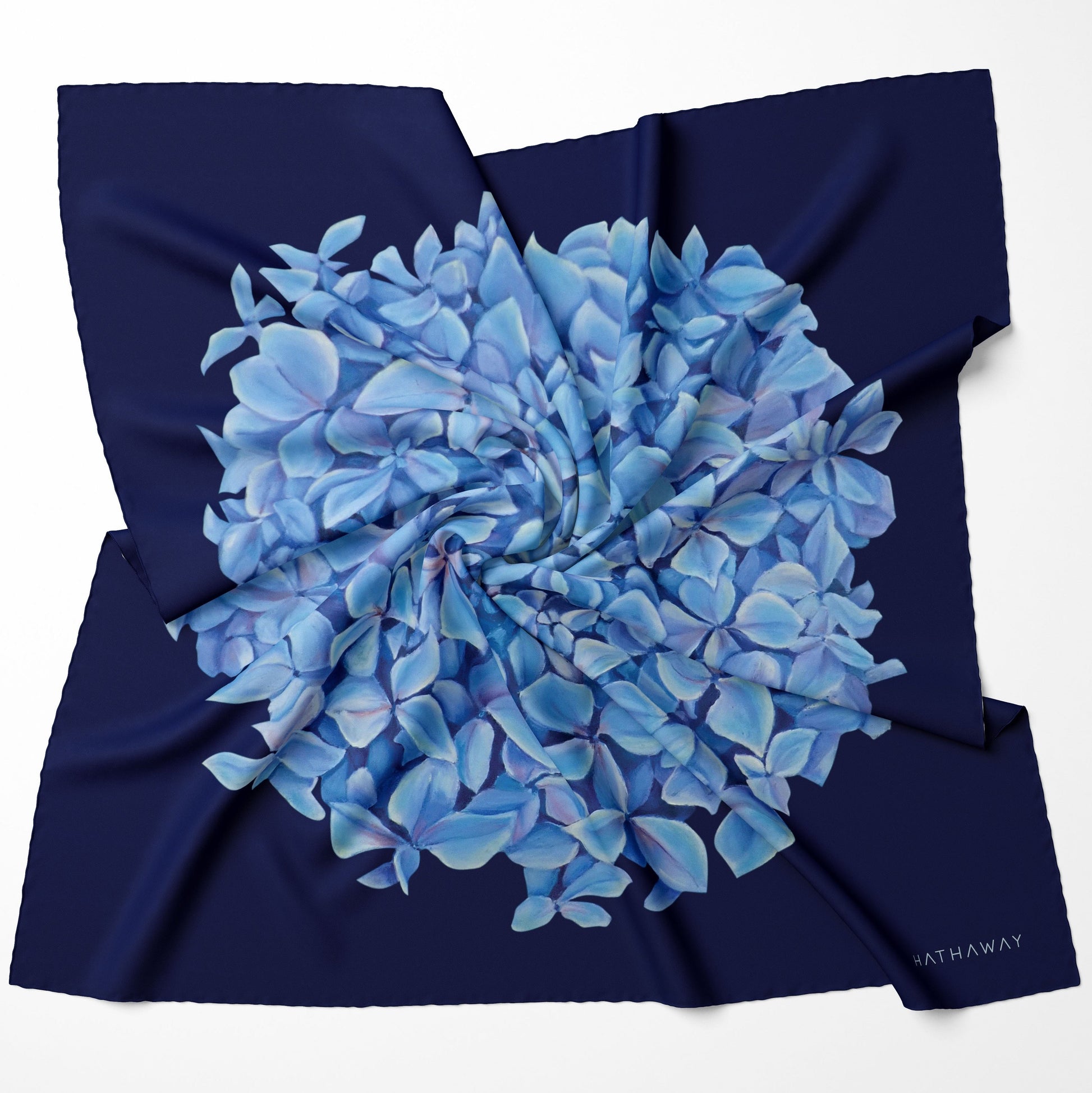 Scarf designs are created from Lyn Hathaway's hand-painted botanical artworks, and are designed in London by her daughter Sera Hathaway.
